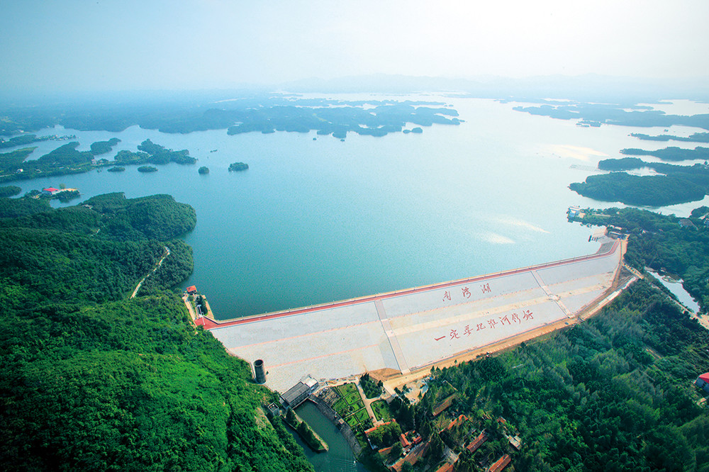 南灣水庫是建國初期淮河流域治理總體規(guī)劃的五座重點水庫之一,位于信陽浉河干流上??値烊?3.55億m3,為粘土心墻砂殼壩。以其庫容大、水質(zhì)好、風(fēng)景美而聞名,2011年入選首批國家水利風(fēng)景區(qū)。獲治淮工程優(yōu)秀設(shè)計二等獎。