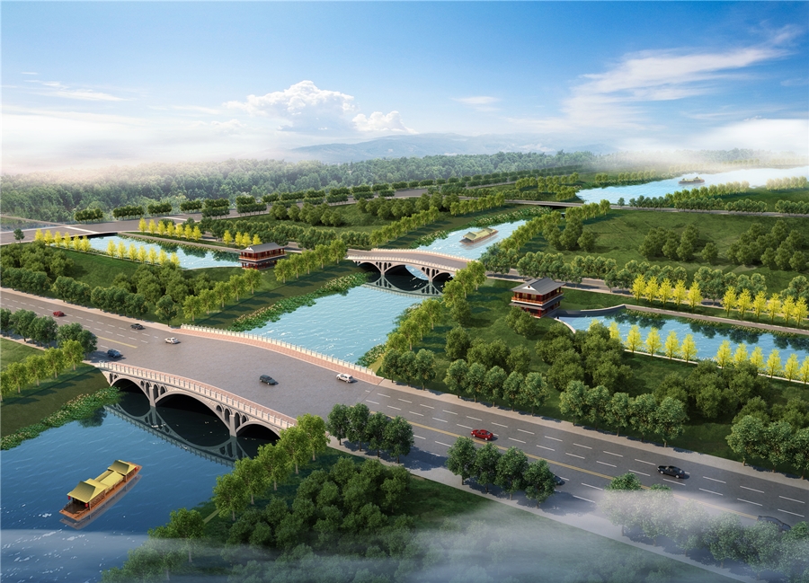鄭東新區(qū)十八里云溪項(xiàng)目位于鄭東新區(qū)科學(xué)谷,該工程為河南大運(yùn)河古汴河鄭東新區(qū)段,并自西向東橫穿鄭開雙創(chuàng)走廊,兩者有機(jī)融合,在沿線形成“一廊、一鎮(zhèn)、五園”空間結(jié)構(gòu)布局。治理范圍西起賈魯河京港澳高速,東至萬三公路橋,總長12.43km。工程主要布局為“1河、2水源、3閘、1堰、1湖、8島、1倒虹、1退水、6碼頭、1生態(tài)”。工程建成后,水域面積79.06萬㎡,總庫容152萬m³,具有排澇、連通輸水、調(diào)蓄、灌溉、通航、生態(tài)景觀、旅游、傳承文化等功能,以實(shí)現(xiàn)聯(lián)系千年水脈,重塑運(yùn)河文明,再現(xiàn)“古水流香,汴水秋生,煙柳花開、曲折蜿蜒”意境的設(shè)計(jì)效果,對于支撐國家大運(yùn)河文化帶建設(shè),同時(shí)帶動科學(xué)谷經(jīng)濟(jì)發(fā)展等方面具有十分重要的作用。