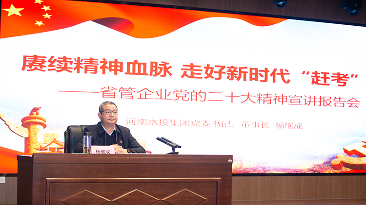 2022年12月12日下午,公司黨委書記、董事長翟淵軍帶領(lǐng)公司班子成員現(xiàn)場參加了水投集團(tuán)舉辦的二十大精神報(bào)告會,各支部也組織支部黨員在線參加了學(xué)習(xí)。會上,水投集團(tuán)黨委書記、董事長楊繼成作了《賡續(xù)精神血脈 走好新時代“趕考”路》的報(bào)告。報(bào)告從大會主題及主要成果、過去5年工作和新時代十年偉大變革、馬克思主義中國化時代化、中國式現(xiàn)代化、全面建設(shè)社會主義現(xiàn)代化國家的目標(biāo)任務(wù)、堅(jiān)持黨的全面領(lǐng)導(dǎo)和全面從嚴(yán)治黨、應(yīng)對風(fēng)險挑戰(zhàn)、傳承弘揚(yáng)紅旗渠精神等8個方面對黨的二十大精神進(jìn)行了全面解讀和輔導(dǎo)。報(bào)告緊扣主題、內(nèi)涵豐富、邏輯嚴(yán)謹(jǐn),對廣大黨員準(zhǔn)確把握二十大精神有很強(qiáng)的啟迪作用,對進(jìn)一步落實(shí)落細(xì)二十大精神有很強(qiáng)的指導(dǎo)意義。