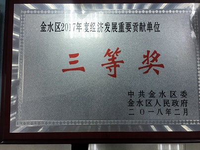 大會頒發(fā)了十一種獎項,其中我公司獲得金水區(qū)經(jīng)濟發(fā)展重要貢獻獎三等獎。
