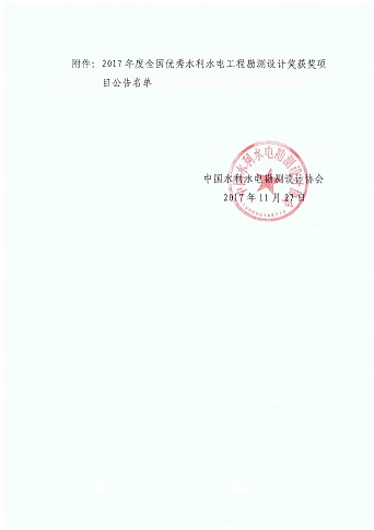 11月28日,中國水利水電勘測(cè)設(shè)計(jì)協(xié)會(huì)發(fā)布《關(guān)于2017年度全國優(yōu)秀水利水電工程勘測(cè)設(shè)計(jì)獎(jiǎng)獲獎(jiǎng)項(xiàng)目公告》 [中水協(xié)秘〔2017〕70號(hào)]文件,對(duì)獲得2017年度全國優(yōu)秀水利水電工程勘測(cè)設(shè)計(jì)獎(jiǎng)的112個(gè)項(xiàng)目進(jìn)行了表彰。設(shè)計(jì)公司報(bào)送的《南水北調(diào)中線一期工程總干渠沙河渡槽段工程》和《南水北調(diào)中線一期工程總干渠沙河南~黃河南禹州和長葛段工程》兩個(gè)項(xiàng)目,均被評(píng)為金質(zhì)獎(jiǎng)。