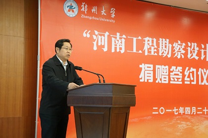 4月20日,“河南工程勘察設(shè)計(jì)”獎(jiǎng)學(xué)金捐贈(zèng)簽約儀式在鄭州大學(xué)校園舉行。鄭州大學(xué)副校長(zhǎng)宋毛平代表鄭州大學(xué)致辭,介紹了鄭州大學(xué)的發(fā)展歷程和鄭州大學(xué)教育發(fā)展基金會(huì)的現(xiàn)狀,對(duì)協(xié)會(huì)所做工作表示感謝,對(duì)捐贈(zèng)單位支持教育事業(yè)、熱心奉獻(xiàn)社會(huì)的卓識(shí)善舉表示敬意。