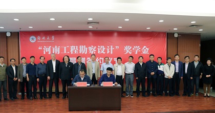 協(xié)會(huì)企業(yè)文化工作委員會(huì)主任、煤炭工業(yè)鄭州設(shè)計(jì)研究院黨委書記牛其志代表企業(yè)進(jìn)行捐贈(zèng),宋毛平副校長(zhǎng)代表鄭州大學(xué)接受捐贈(zèng)。“河南工程勘察設(shè)計(jì)”獎(jiǎng)學(xué)金16家捐助企業(yè)負(fù)責(zé)人、鄭州大學(xué)教育發(fā)展基金會(huì)負(fù)責(zé)人及師生代表共200多人參加簽約儀式。