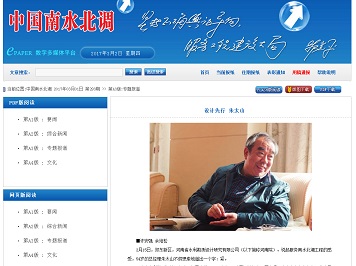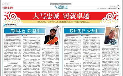 3月1日,《中國南水北調(diào)》報(bào)及其網(wǎng)頁版(epaper.nsbd.cn)均刊發(fā)了采訪我公司總經(jīng)理朱總的專題報(bào)道《設(shè)計(jì)先行朱太山》。