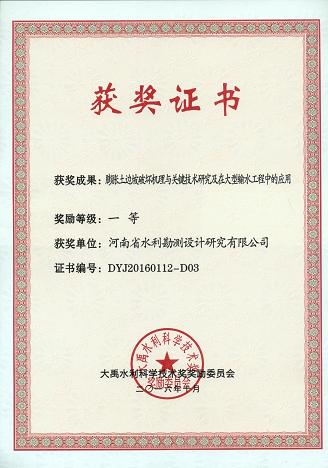 注:大禹水利科學(xué)技術(shù)獎旨在獎勵在水利科學(xué)技術(shù)進步中做出突出貢獻的集體和個人,是經(jīng)國家科學(xué)技術(shù)部批準(zhǔn)、由中國水利學(xué)會設(shè)立和承辦、面向全國水利行業(yè)的科學(xué)技術(shù)獎。