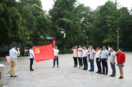 瞻仰焦裕祿烈士墓后,參加活動的全體同志面對黨旗、佩戴黨徽章,莊嚴地重溫了入黨誓詞。入黨誓詞,激蕩著共產(chǎn)黨人的信仰;“為共產(chǎn)主義奮斗終身”,蘊藏著共產(chǎn)黨人的初心。