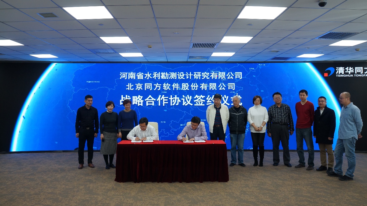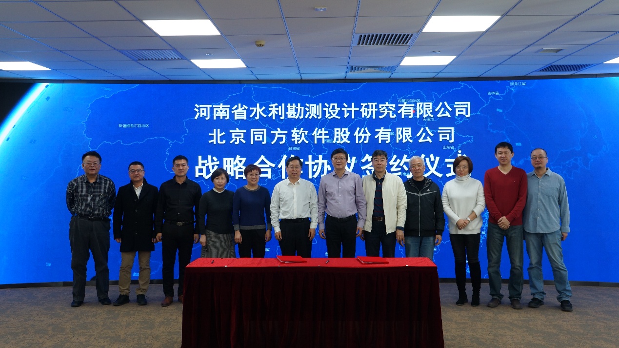 2019年3月18日,河南省水利勘測設(shè)計(jì)研究有限公司與北京同方軟件股份有限公司在北京舉行戰(zhàn)略合作協(xié)議簽約儀式。同方股份有限公司副總裁周俠、大數(shù)據(jù)產(chǎn)業(yè)部副總經(jīng)理李小華、北京同方軟件股份有限公司副總經(jīng)理侯小龍、大數(shù)據(jù)技術(shù)中心總經(jīng)理郝斌、大數(shù)據(jù)技術(shù)中心副總經(jīng)理石大為、水務(wù)事業(yè)部總經(jīng)理葛彥超,河南省水利勘測設(shè)計(jì)研究有限公司董事長翟淵軍、副總經(jīng)理賈少燕、數(shù)字工程院院長高英、數(shù)字工程院總工張玉明等出席簽約儀式。