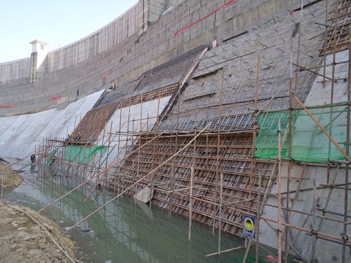 石漫灘水庫位于河南省舞鋼市境內的淮河上游洪河支流滾河,水庫控制流域面積230km2,總庫容1.2億m3,工程規(guī)模為大(2)型,是一座以工業(yè)供水、防洪為主,結合灌溉、旅游、養(yǎng)殖等任務的綜合利用水庫。大壩壩型為全斷面碾壓混凝土重力壩,2012年8月,石漫灘水庫鑒定為三類壩。