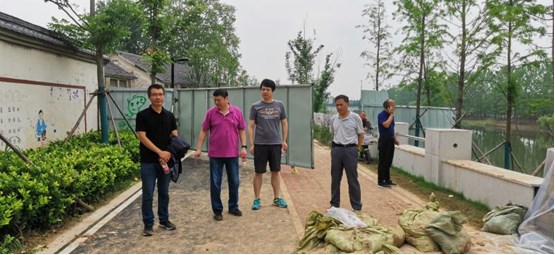 技術(shù)副總監(jiān)田耕(圖中左二)現(xiàn)場(chǎng)指導(dǎo)渦河堤頂排水工程施工