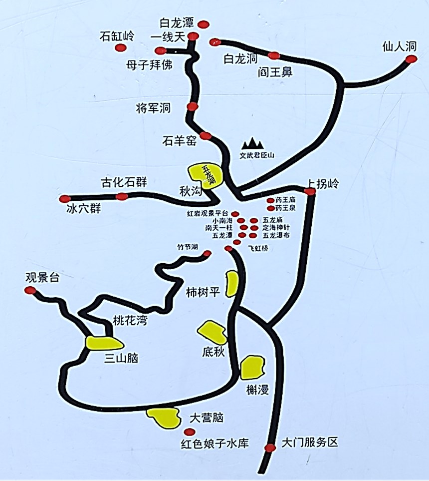 秋溝景區(qū)位于新鄉(xiāng)市輝縣南寨鎮(zhèn)境內(nèi),總面積14平方公里。景區(qū)三面環(huán)山,海拔800多米。景區(qū)內(nèi)山高林密,峽谷壁垂,主要有五龍峽、五龍?zhí)?、南天一柱、小南海、紅色娘子水庫、桃花灣等景點(diǎn)。因?yàn)檫^去溝內(nèi)盡是楸樹,故取名為楸溝,后簡化為秋溝。