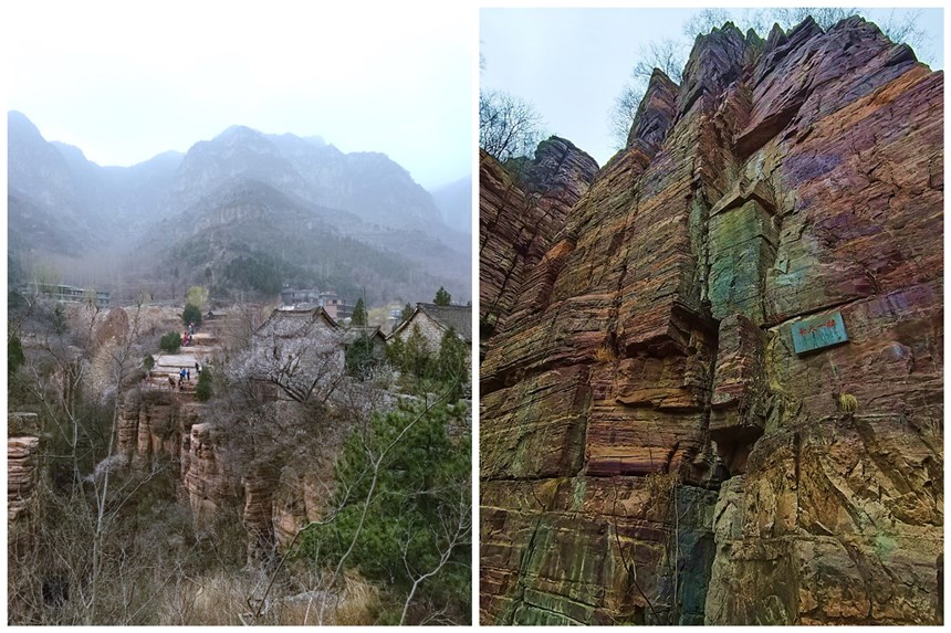 五龍峽兩側(cè)是高入云端、峻峭的紅崖,谷底是碧綠的池水,一處“飛虹橋”橫在水面上,別有一番景致。進(jìn)入谷底深處,前方一座直上直下的山峰“南天一注”屹立在谷底盡頭。大家沿著山體一側(cè)的“云梯”攀升,經(jīng)過“定海神針”、“小南海”、“系情谷”等景點(diǎn),一直來到紅色娘子水庫大壩處,最終到達(dá)山頂平臺。
