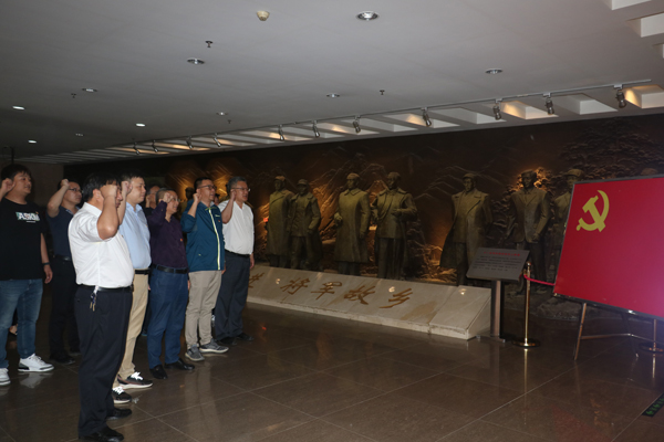 在鄂豫皖革命紀念館,大家懷著無比崇敬的心情瞻仰和聆聽了鄂豫皖地區(qū)革命先烈前仆后繼、英勇戰(zhàn)斗的光輝事跡。在鮮紅的黨旗下,大家重溫了神圣而莊嚴的入黨誓詞;在確山縣竹溝革命紀念館,大家被革命先賢們“為有犧牲多壯志,敢教日月?lián)Q新天”的英雄氣概深深震撼;在莊嚴肅穆的竹溝革命烈士陵園,大家緩緩拾級而上,深切緬懷革命先烈,并以三鞠躬形式表達對革命先烈的崇高敬意。
