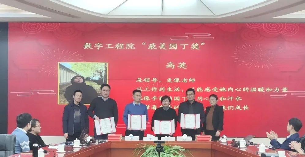 接著,高英院長做了簡潔且詳盡的總結,從生產項目、科技創(chuàng)新、人才培養(yǎng)、知識產權和外部獎項申報等考核指標對數(shù)字院2021的工作進行量化分析,重點指出了不足,明確了未來的重點,提出了“基礎筑牢、穩(wěn)中求進、需求牽引、適度前瞻、一專多能”的部門發(fā)展思路,并從“知世故而不世故、善良是一種品德、感恩是一種境界”給出了為人做事的準則,倡導大家自覺主動、積極創(chuàng)新的工作和生活態(tài)度,并對部門“德才兼?zhèn)?以德為先”“情系團隊 樂在奉獻”的員工代表進行了表彰,鼓舞了士氣。