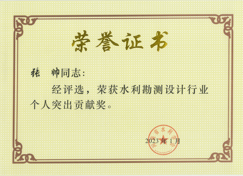 為鼓勵水利科技工作者開拓創(chuàng)新,2022年11月,河南省水利學會在全省開展2022年度個人突出貢獻獎評選活動,19名同志被評為勘測設計類個人突出貢獻獎,公司技術副總監(jiān)牛賀道和工程設計二院張帥兩位同志獲此殊榮。