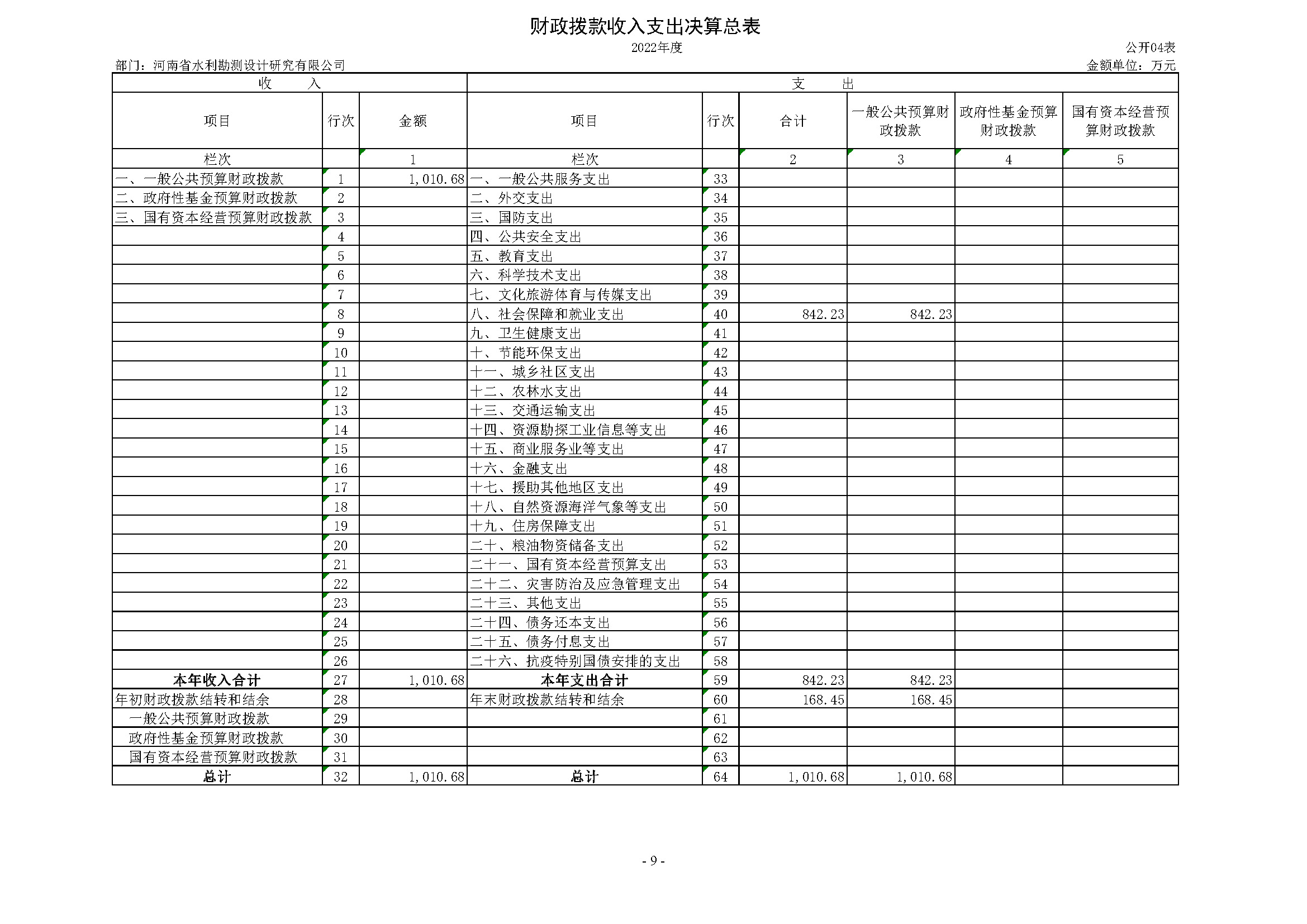 2022年度河南省水利勘測(cè)設(shè)計(jì)研究有限公司部門(mén)決算