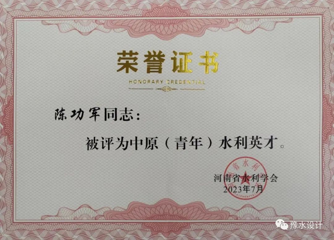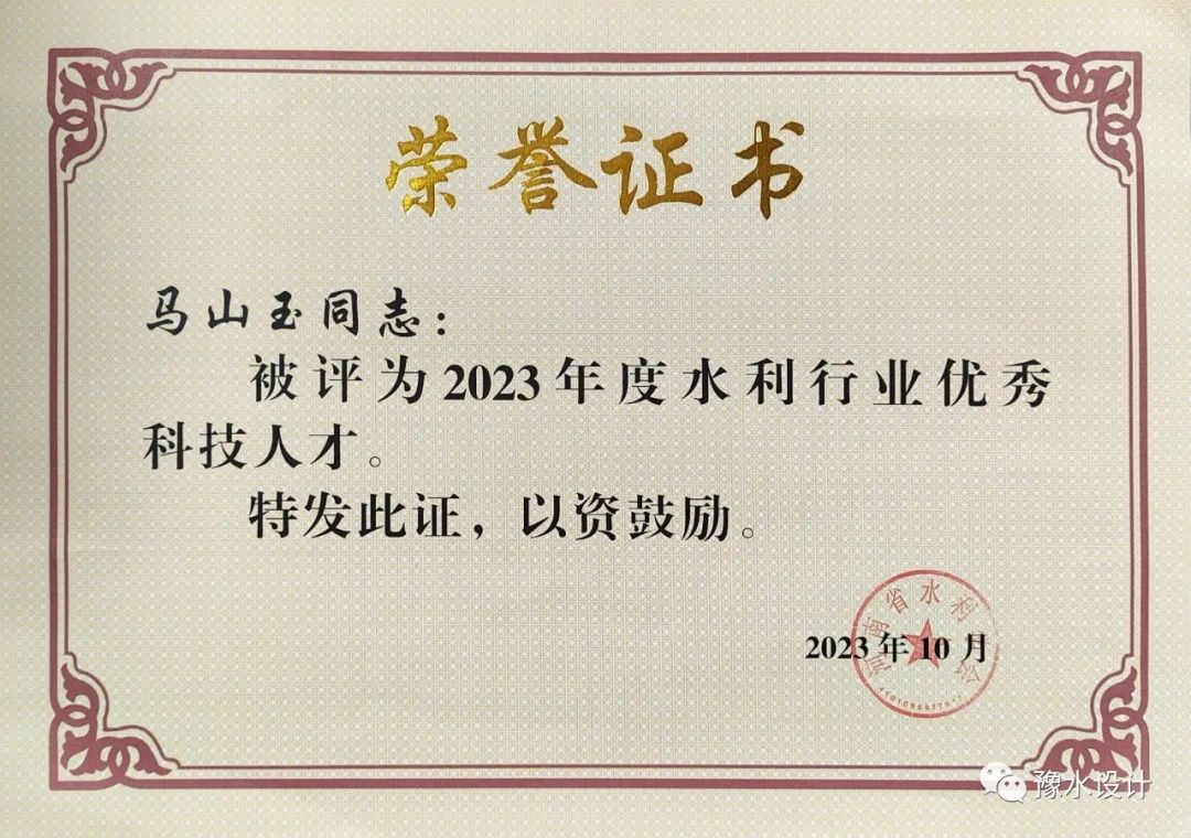 在河南省水利學(xué)會(huì)組織的2023年度中原(青年)水利英才、水利行業(yè)優(yōu)秀科技人才評(píng)選活動(dòng)中,公司數(shù)字工程院副院長(zhǎng)陳功軍獲2023年度中原(青年)水利英才,馬山玉獲2023年度水利行業(yè)優(yōu)秀科技人才。在此對(duì)兩位同志表示祝賀。
