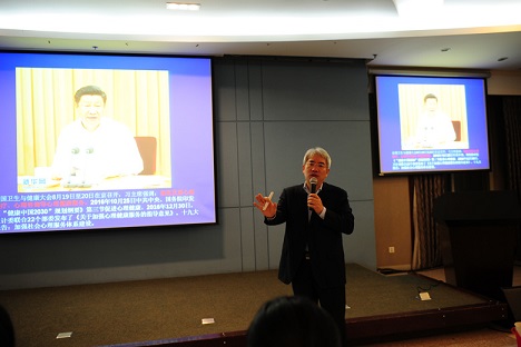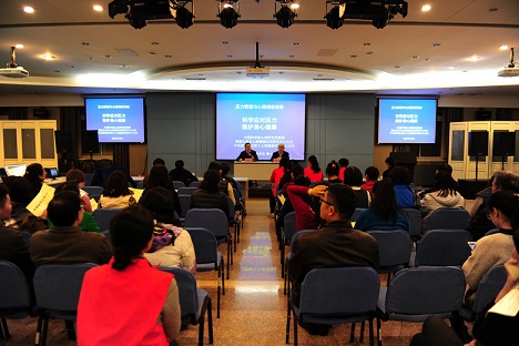 活動第一項(xiàng)內(nèi)容為專家講座。12月6日上午,中央國家機(jī)關(guān)職工心理健康咨詢中心主任祝卓宏教授應(yīng)邀作了《科學(xué)應(yīng)對壓力,維護(hù)身心健康》專題講座。講座中,他圍繞人所面對的壓力類型、身心應(yīng)對壓力所做出的反應(yīng)、以及壓力的解決之道三方面進(jìn)行了具體闡述,通過講故事、現(xiàn)場做心理學(xué)實(shí)驗(yàn),帶領(lǐng)大家練習(xí)腹式呼吸、健腦操、正念冥想身體掃描技術(shù)等,極大地活躍了現(xiàn)場的氣氛。