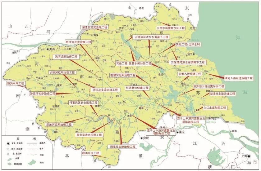 淮河流域防洪除澇標(biāo)準(zhǔn)顯著提高,淮河干流上游防洪標(biāo)準(zhǔn)超10年一遇;中游主要防洪保護(hù)區(qū)、重要城市和下游洪澤湖大堤防洪標(biāo)準(zhǔn)已達(dá)到100年一遇;重要支流及中小河流的防洪標(biāo)準(zhǔn)已基本提高到10—20年一遇以上;沂沭泗河中下游重要防洪保護(hù)區(qū)的總體防洪標(biāo)準(zhǔn)基本上達(dá)到50年一遇;在行蓄洪區(qū)充分運(yùn)用的情況下,可防御新中國成立以來發(fā)生的流域性最大洪水。