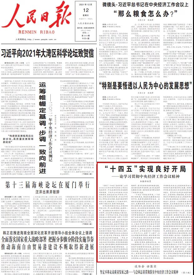 “實(shí)現(xiàn)了‘十四五’良好開局”,12月8日至10日舉行的中央經(jīng)濟(jì)工作會(huì)議高度評價(jià)一年來我國經(jīng)濟(jì)社會(huì)發(fā)展取得的成績。習(xí)近平總書記在會(huì)上發(fā)表重要講話,深刻總結(jié)2021年經(jīng)濟(jì)工作,深入分析當(dāng)前經(jīng)濟(jì)形勢,對2022年經(jīng)濟(jì)工作作出重大部署,為我們做好明年經(jīng)濟(jì)工作,迎接黨的二十大勝利召開,指明了前進(jìn)方向、提供了根本遵循。