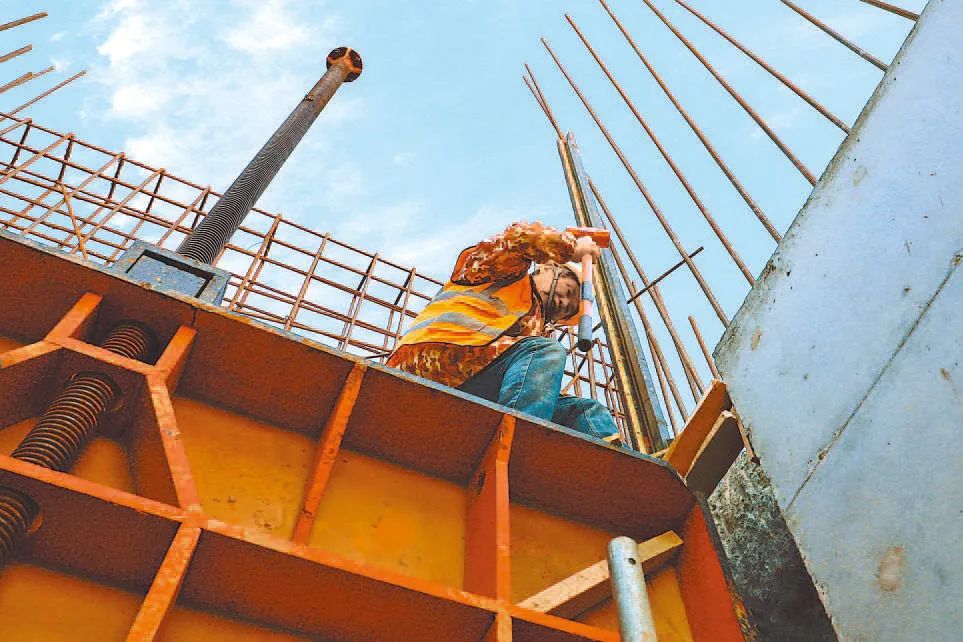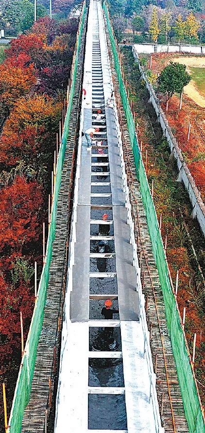 浙江省湖州市安吉縣賦石水庫灌區(qū)續(xù)建配套與節(jié)水改造工程天子湖段渡槽施工現(xiàn)場。毛才傳攝(人民視覺)