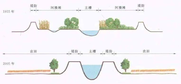 在修復(fù)河湖地貌形態(tài)空間異質(zhì)性方面,恢復(fù)河流蜿蜒性,重建深潭-淺灘序列;恢復(fù)河流橫斷面的地貌單元多樣性,包括恢復(fù)河槽斷面幾何非對(duì)稱形狀,河濱帶和河漫灘的植被恢復(fù)和重建;行洪通道的清理及河漫灘各類地貌單元包括洼地、沼澤、濕地、故道和牛軛湖的恢復(fù)。