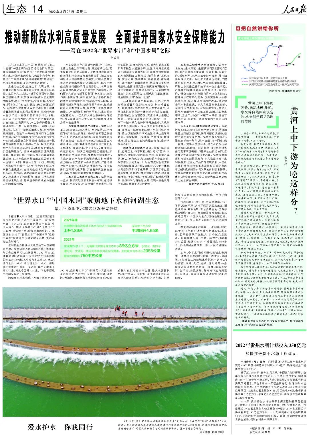 3月22日是第三十屆“世界水日”,第三十五屆“中國水周”的宣傳活動也同時(shí)開啟。聯(lián)合國確定今年“世界水日”的主題是“珍惜地下水,珍視隱藏的資源”,我國紀(jì)念今年“世界水日”“中國水周”活動的主題是“推進(jìn)地下水超采綜合治理復(fù)蘇河湖生態(tài)環(huán)境”。
