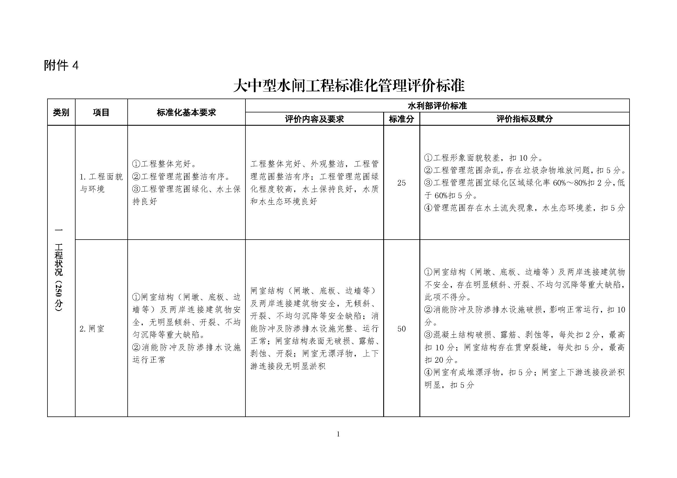 附件4 大中型水閘工程標(biāo)準(zhǔn)化管理評價標(biāo)準(zhǔn)