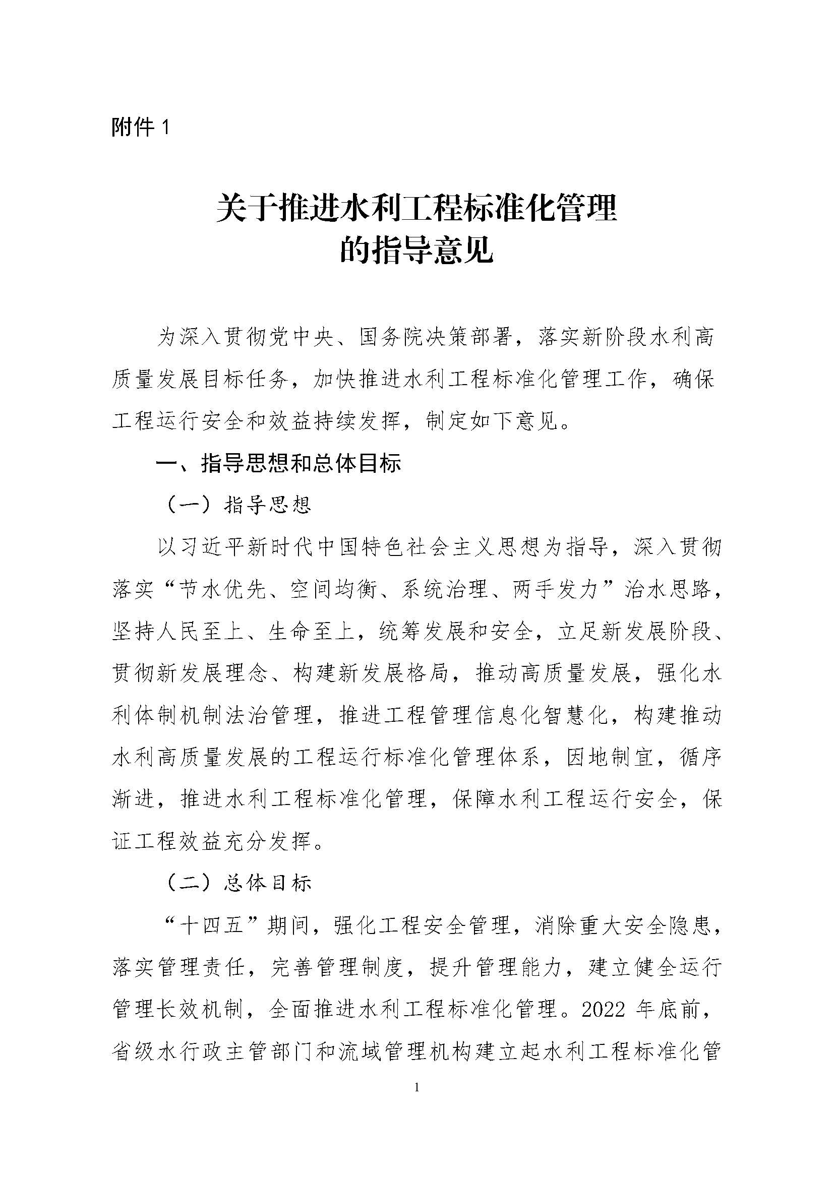 附件1 關(guān)于推進(jìn)水利工程標(biāo)準(zhǔn)化管理的指導(dǎo)意見