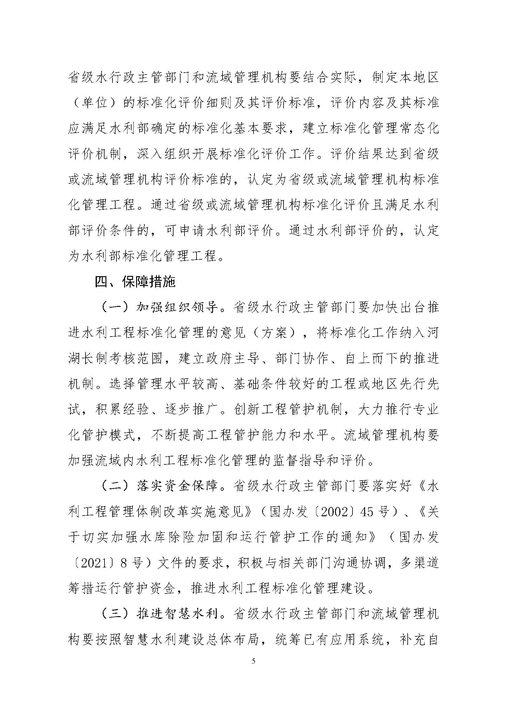 近日,水利部印發(fā)《關(guān)于推進(jìn)水利工程標(biāo)準(zhǔn)化管理的指導(dǎo)意見》(以下簡稱《指導(dǎo)意見》)、《水利工程標(biāo)準(zhǔn)化管理評價辦法》(以下簡稱《評價辦法》)及其評價標(biāo)準(zhǔn),旨在深入貫徹黨中央、國務(wù)院決策部署,落實(shí)新階段水利高質(zhì)量發(fā)展目標(biāo)任務(wù),加快推進(jìn)水利工程標(biāo)準(zhǔn)化管理工作,確保工程運(yùn)行安全和效益持續(xù)發(fā)揮。