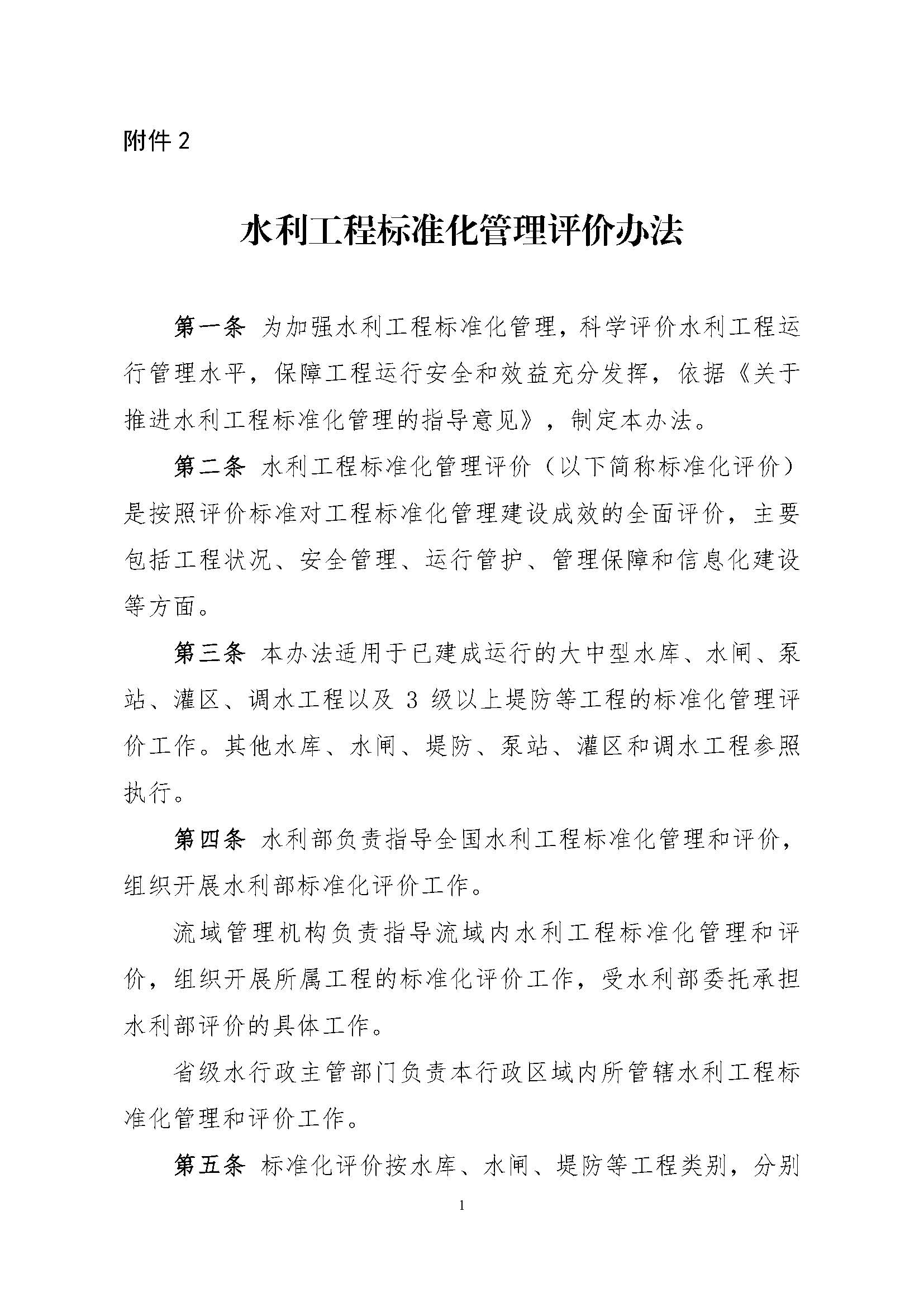 附件2 水利工程標(biāo)準(zhǔn)化管理評價辦法