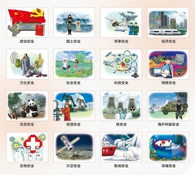 至此,我國(guó)國(guó)家安全領(lǐng)域主要包括:政治安全、國(guó)土安全、軍事安全、經(jīng)濟(jì)安全、文化安全、社會(huì)安全、科技安全、網(wǎng)絡(luò)安全、生態(tài)安全、資源安全、核安全、海外利益安全、生物安全、太空安全、極地安全、深海安全。