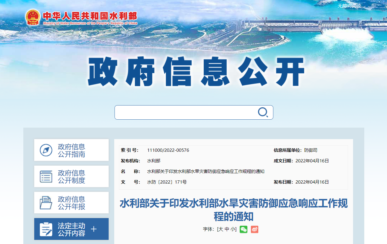 日前,水利部印發(fā)《水利部水旱災害防御應急響應工作規(guī)程》,適用于全國范圍內江河洪水災害、臺風暴潮災害、山洪災害、干旱災害、咸潮以及水庫垮壩、堤防決口、水閘倒塌等次生衍生災害的預防和應急處置。