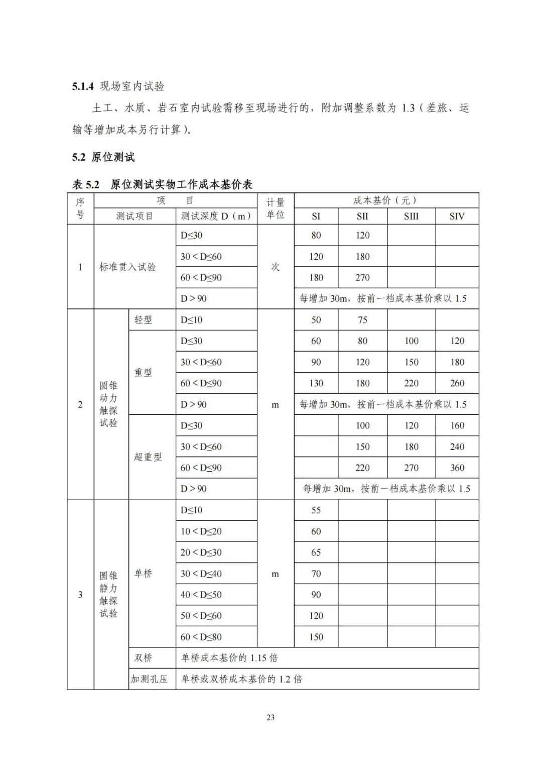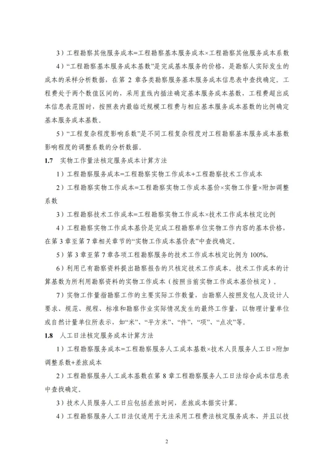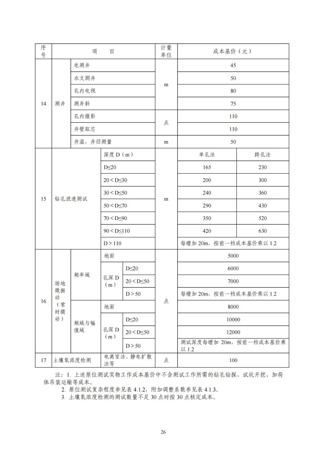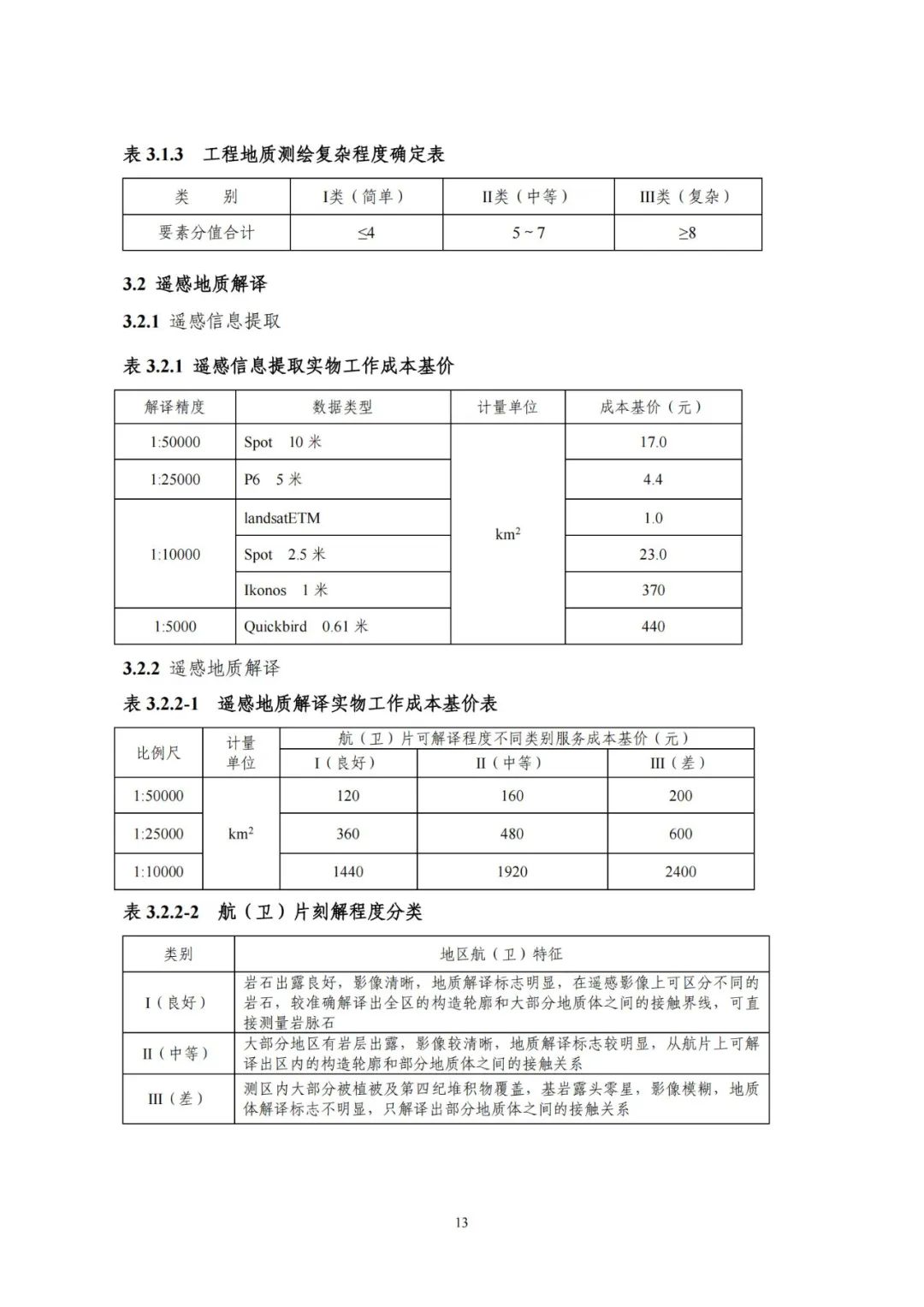 《要素信息》分為八章,相關(guān)成本測(cè)算分為工程費(fèi)法(其包含巖土工程勘察、巖土工程勘察咨詢與監(jiān)理、巖土工程設(shè)計(jì)和專業(yè)工程咨詢)、實(shí)物工作量法(其包含工程地質(zhì)測(cè)繪與遙感地質(zhì)解譯、巖土工程勘探與取樣、巖土工程試驗(yàn)/檢測(cè)與監(jiān)測(cè)、工程測(cè)量、水文地質(zhì)勘察)及人工日法三類。除傳統(tǒng)的巖土工程試驗(yàn)、測(cè)試和工程測(cè)量項(xiàng)目外,實(shí)物工作成本包括了土的易溶鹽及導(dǎo)熱系數(shù)等室內(nèi)試驗(yàn)、多功能數(shù)字式孔壓靜力觸探試驗(yàn)、溫度測(cè)量等工程物探、海洋和內(nèi)陸水域測(cè)量、無人機(jī)航空攝影測(cè)量、地面三維激光掃描測(cè)量、規(guī)劃測(cè)量等以新技術(shù)方法為主的專業(yè)技術(shù)服務(wù)項(xiàng)目。