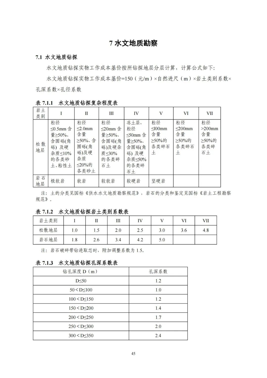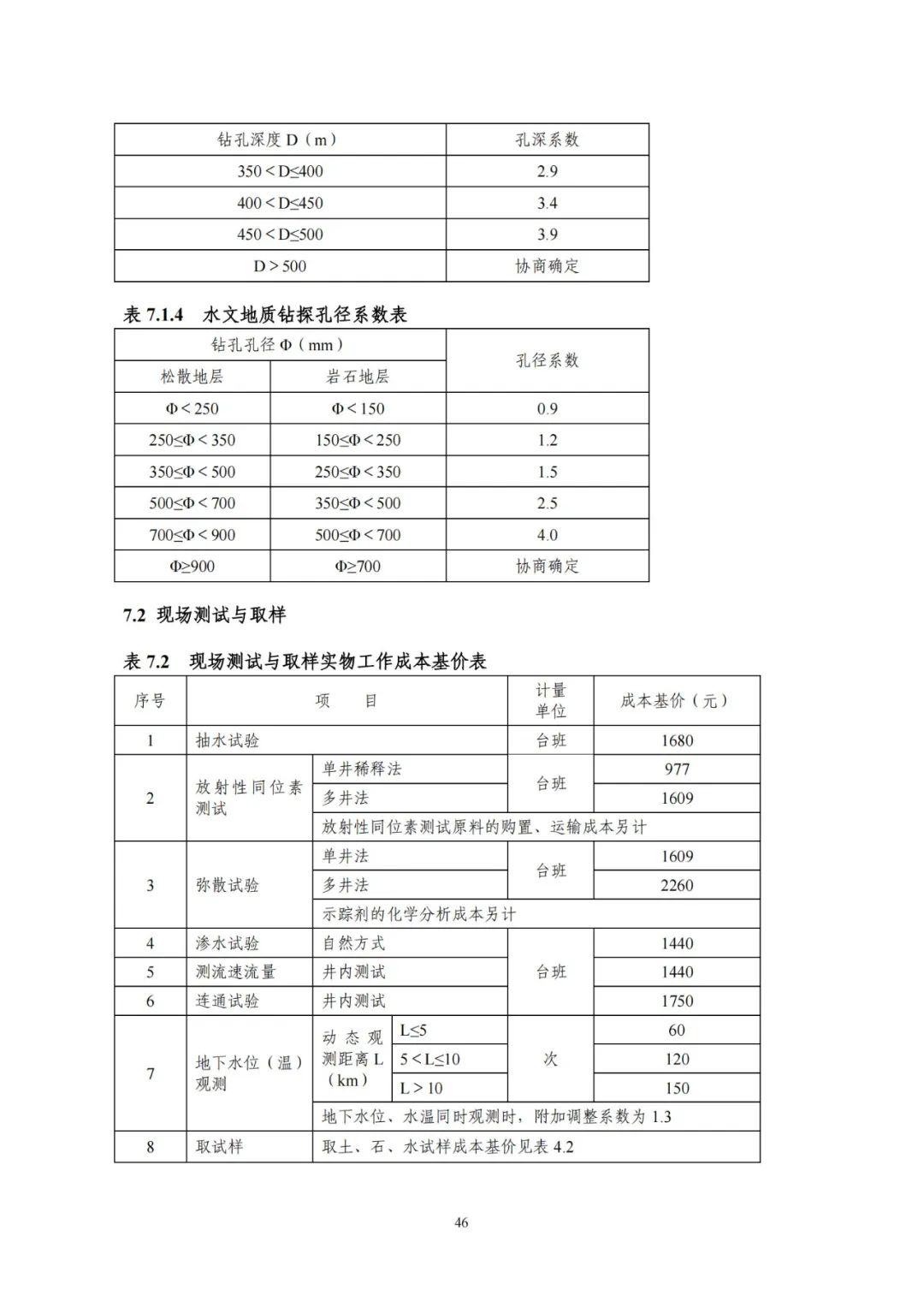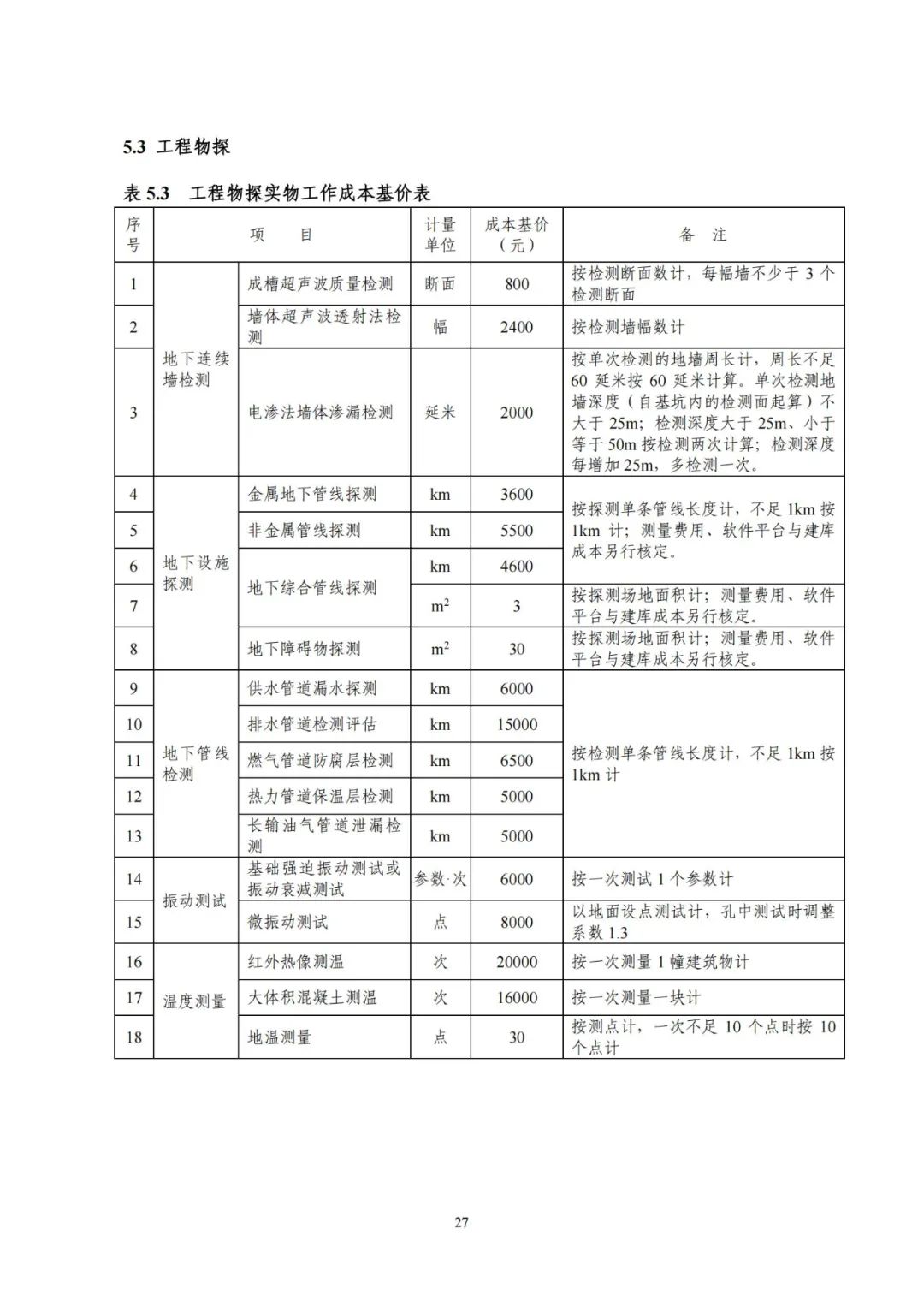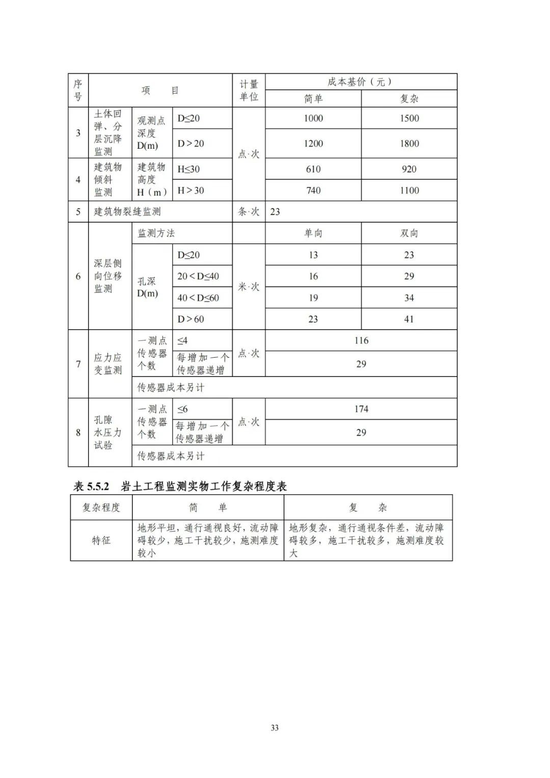 《要素信息》分為八章,相關(guān)成本測(cè)算分為工程費(fèi)法(其包含巖土工程勘察、巖土工程勘察咨詢與監(jiān)理、巖土工程設(shè)計(jì)和專業(yè)工程咨詢)、實(shí)物工作量法(其包含工程地質(zhì)測(cè)繪與遙感地質(zhì)解譯、巖土工程勘探與取樣、巖土工程試驗(yàn)/檢測(cè)與監(jiān)測(cè)、工程測(cè)量、水文地質(zhì)勘察)及人工日法三類。除傳統(tǒng)的巖土工程試驗(yàn)、測(cè)試和工程測(cè)量項(xiàng)目外,實(shí)物工作成本包括了土的易溶鹽及導(dǎo)熱系數(shù)等室內(nèi)試驗(yàn)、多功能數(shù)字式孔壓靜力觸探試驗(yàn)、溫度測(cè)量等工程物探、海洋和內(nèi)陸水域測(cè)量、無人機(jī)航空攝影測(cè)量、地面三維激光掃描測(cè)量、規(guī)劃測(cè)量等以新技術(shù)方法為主的專業(yè)技術(shù)服務(wù)項(xiàng)目。